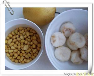 将黄豆洗净,用清水浸泡;荸荠去皮洗净,切块;雪梨洗净,去皮和核,切块。