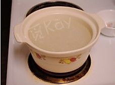 白米洗净后放入砂锅,加清水煮沸,转小火慢熬。