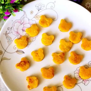 食材准备:南瓜120克,面粉50克,鸡蛋一个,配方奶80克,糖少许。