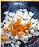 莲藕去皮,切丁,放入加少许白醋的清水中浸泡5分钟,捞出沥干待用;