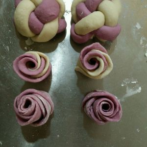 紫色面团也是揉成三光(加了半个紫薯),盖上干净胶袋让它睡半个小时。紫色面团发酵还可以没有进微波炉。