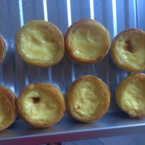 放入烤箱中中上层200度10分钟,我买的是迷你蛋挞皮,所以烤10分钟,普通蛋挞皮得烤20分钟左右。