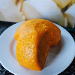 南瓜切成小块,放微波炉蒸熟,再用勺子碾成南瓜泥(有耐心的话可以过筛,可以使南瓜泥的口味更细腻些)