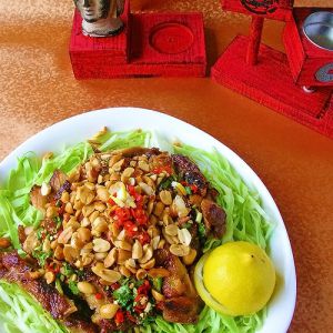 淋上酱汁,再将半个柠檬挤汁淋上,撒上花生碎既完成。