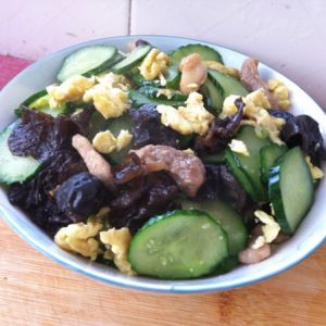 所有食材准备完毕,热锅放少许油,葱花呛锅、放入黄瓜翻炒片刻陆续放入肉片鸡蛋,最后放盐、鸡精味精调味,淋入少许水淀粉,(最好提前准备)最后来点香油就可以出锅啦!前后就几分钟,别炒过火哦!