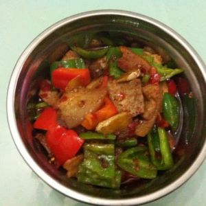 然后加切成块状的海椒放点味精就可以起锅咯。