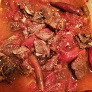 炒锅爆香蒜,下入番茄适当翻炒,再下入刚才压力锅压烂的牛腩和汤汁,小火慢炖等汤汁收的差不多