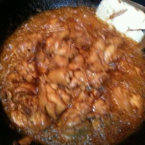 倒入适量的油,待油熟时放入花椒、葱姜蒜爆香,再将腌制好的鸡块倒入油锅中翻炒至鸡肉变黄!