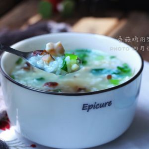 好吃的又营养的宝宝辅食“香菇鸡肉粥”就做好啦!