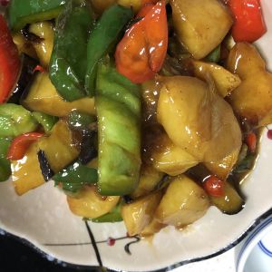 加入青红椒爆炒。