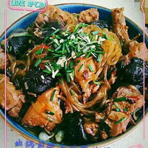 葱.姜.花椒.大料.桂皮.香叶.大辣椒.粉条.油.老抽.黄酒.盐.鸡精适量。