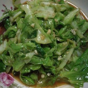 包菜炒至颜色鲜艳发亮时加入蒜末和耗油快速翻炒均匀关火出锅。一盘鲜美的包菜就诞生了,简单而美味