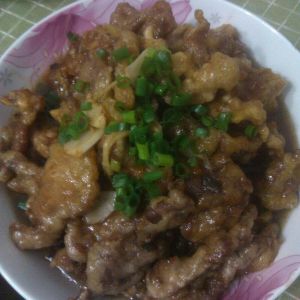 最后把糖醋盐十三香鸡精加淀粉加水调成汁,再在锅底留点炸肉的油,不点就行,然后放切好的“葱碎!姜丝!蒜片!”,下锅翻炒下倒入糖醋汁,汤汁粘稠的时候就把炸好的肉倒进锅里翻几下,让肉肉都蘸上糖醋汁就可以出锅了,然后小伙伴们就可以开吃了!只能送各位一句,美味不可多得啊!别吃撑啦,哈哈哈~