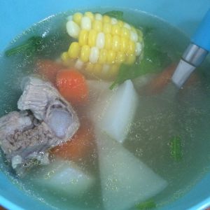 把白萝卜胡萝卜切块,玉米切段,芹菜切末,姜切片。