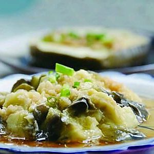 将茄子放在盘里,上锅隔水蒸15分钟。
