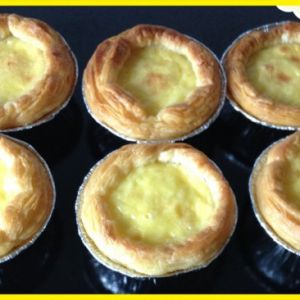倒入蛋挞水(不要太满)蛋挞水的制作: 淡奶油与牛奶混合,加入细砂糖与炼乳,加热搅拌至砂糖溶解。冷却至不烫手后,加入蛋黄与低筋面粉,搅拌均匀即可