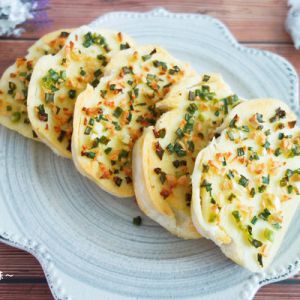 蒜剁成末,香葱切碎,黄油隔热水软化成液体