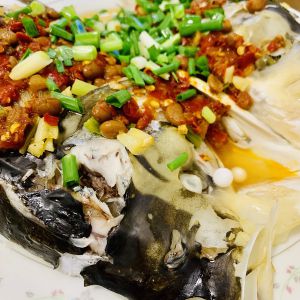 腌制好的鱼冲洗干净后加入新的料酒和盐,水开后上锅蒸5分钟后(视鱼头大小调整),把蒸出来的水倒掉;蒸的同时,把蒜末、姜末和葱末用油煸出香味