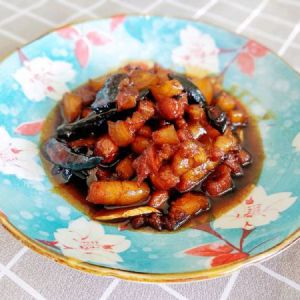 待五花肉有点焦黄的时候,下料酒,酱油。