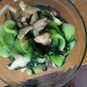 大火翻炒三分钟,油菜和香菇,炒软就可以了