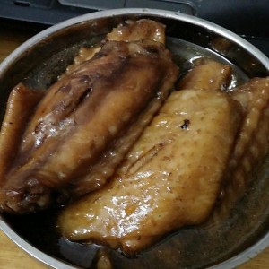 倒入可乐,鸡翅,生姜。煮五分钟后放酱油,十分钟后放盐搅匀,捞起鸡翅。