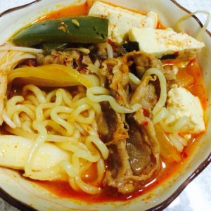 加入辛辣面什么的调料包和一两勺韩式辣酱。