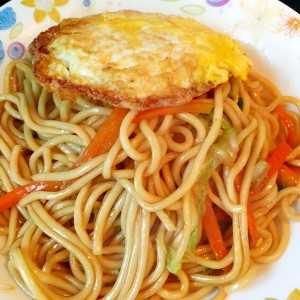 面条倒入锅里,炒匀,再把调好的酱油倒入炒匀