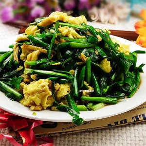 原锅加适量油再次烧热,倒下韭菜花保持大火翻炒片刻,加少许盐、鸡粉。