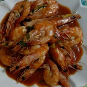 锅里放入平时炒菜的油量,油热后把虾倒入,翻炒至虾体变红!随后放入葱姜蒜,同时用炒勺使劲挤压虾头,把里面的虾油挤出来。一勺料酒,一勺酱油,半勺醋,适量的盐和糖,翻炒。我还稍微放了一点鲍鱼汁,嘻嘻!之后放入水,我觉得跟虾一般多的话,汤就多,虾的一半我觉得应该差不多,最好是热水,改小火盖盖,焖一会儿,三分钟那样,收汁儿,起锅,哈哈