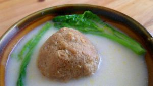 把苹果切片与豆芽一起冷水下入锅中等苹果和豆芽的香味熬出来之后把苹果和豆芽捞出来放入两勺盐,一勺鸡精和一杯牛奶熬煮片刻后把炸好的狮子头倒入汤中熬煮半小时即可!