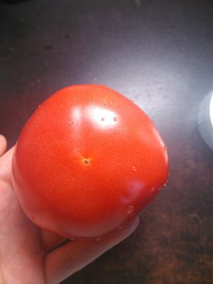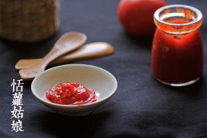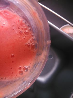 放到料理机里面打成番茄汁,倒进面包机的内桶里
