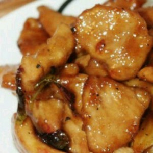 放入炸好的肉片和香菜,翻炒片刻,迅速倒入糖醋汁,炒至肉片均匀裹上料汁,即可出锅