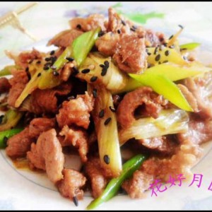 加入花椒粉,孜然粉,盐,炒匀后出锅上面撒上黑芝麻即可.