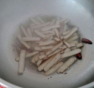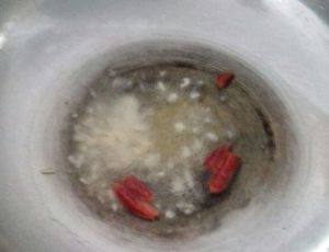 放油,爆香姜蒜末,放二三个干红辣椒。