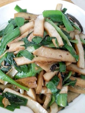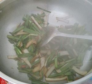 再放入韭菜翻炒几下,加适量盐,鸡精迅速出锅。
