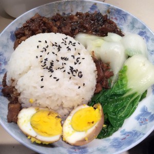 锅里留下红葱头熬出的油,放五花肉粒,翻炒,加老抽生抽对半。放半勺糖,加少许盐。加没过食物的水,煮开加入熬好的红葱头。直到肉软烂。喜欢烂的多煮会。反之不用。