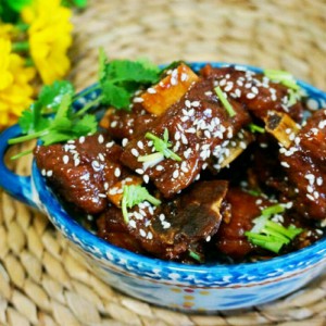 调汁,调汁比例为,料酒,酱油,糖,醋水1:2:3:4:5,可用个勺子量取,具体比例1是几勺根据排骨的数量。我的是两勺料酒,四勺酱油,六勺糖。。。。。