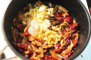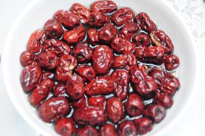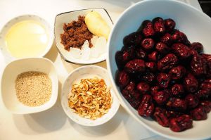 锅内放入水,去核红枣,陈皮,鲜姜切成末,红糖,冰糖,