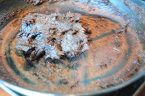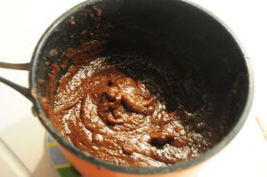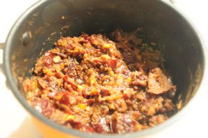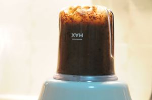 打成泥后,如果太稀可以继续熬,然后,少量多次地加入油,直到慢慢吸收为止。