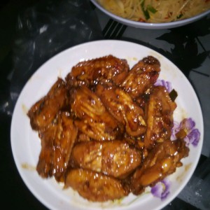 洗干净鸡翅,切好蒜头,姜片,干辣椒。 (鸡翅划痕容易入味)