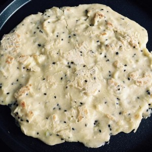 用电饼铛,涂油,倒入糊糊,三分钟翻面,基本就ok啦。