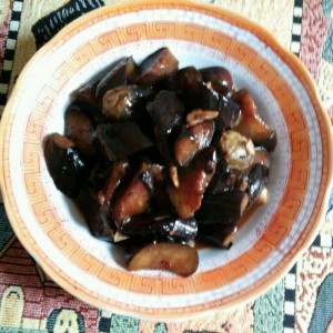 油烧热后加入大蒜碎及茄块改小火慢慢将茄块焙软,再加入蚝油、豆豉酱及少许盐翻炒均匀,再加入适量水小火慢炖5—8分钟,入味收汁后装盘即可。