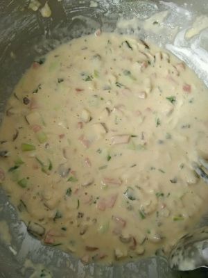 将切好的配菜全部放入拌好的面糊里。