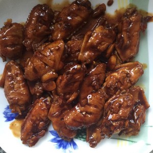 大火熬制15分钟,要经常翻个,然后小火收汁。最后装盘,美味的鸡翅就做成啦!好开心!