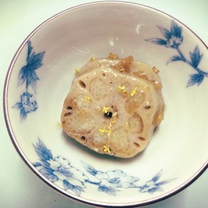 放凉取出藕节切片装盘,淋上煮剩的糖汁,撒适量干桂花,大功告成!