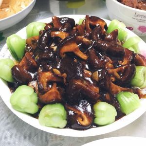 6.香菇码在油菜上,浓油赤酱十分可口,大功告成。