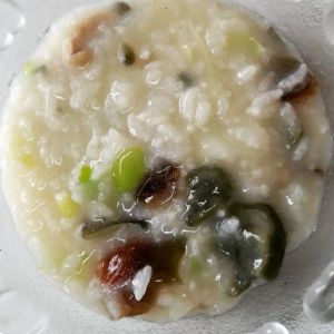 我特意用电饭锅煮的粥,因为方便。米提前泡了一个小时,熟的快。电饭锅气上来了开盖搅拌,边搅边煮,煮到粘稠。
