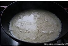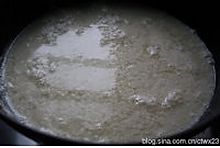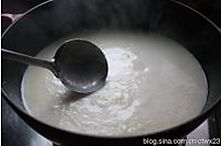 待温度降至85到90度的样子,慢慢倒入白醋水,边倒入边搅拌