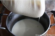 把第二次做好的豆浆过滤到第一次做好的过滤好的豆浆一起