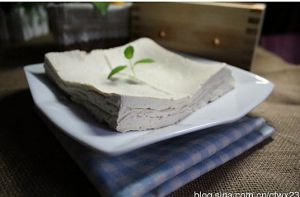 用一只平底碗放入水压上(压多少轻重自己决定,压得重豆腐老些,压得轻豆腐就嫩些)